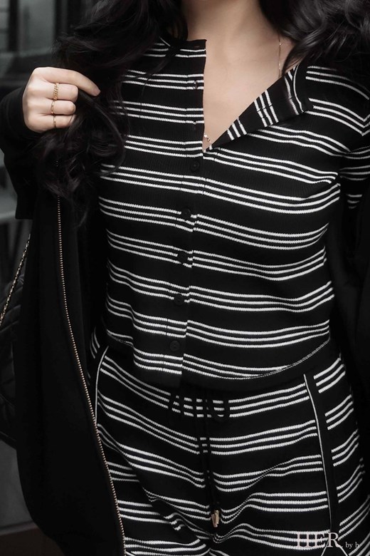 人造絲|法式黑白條紋套裝
